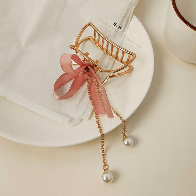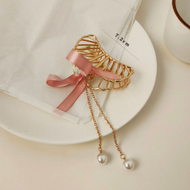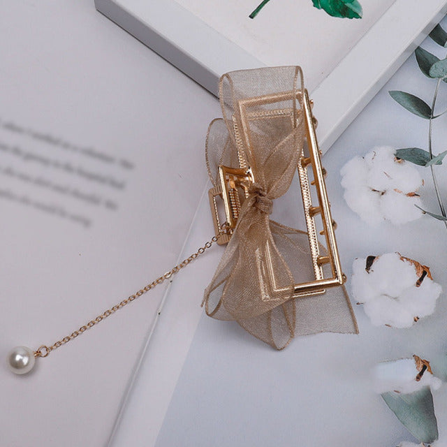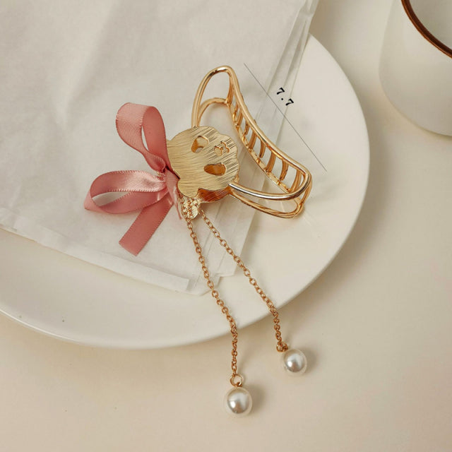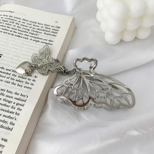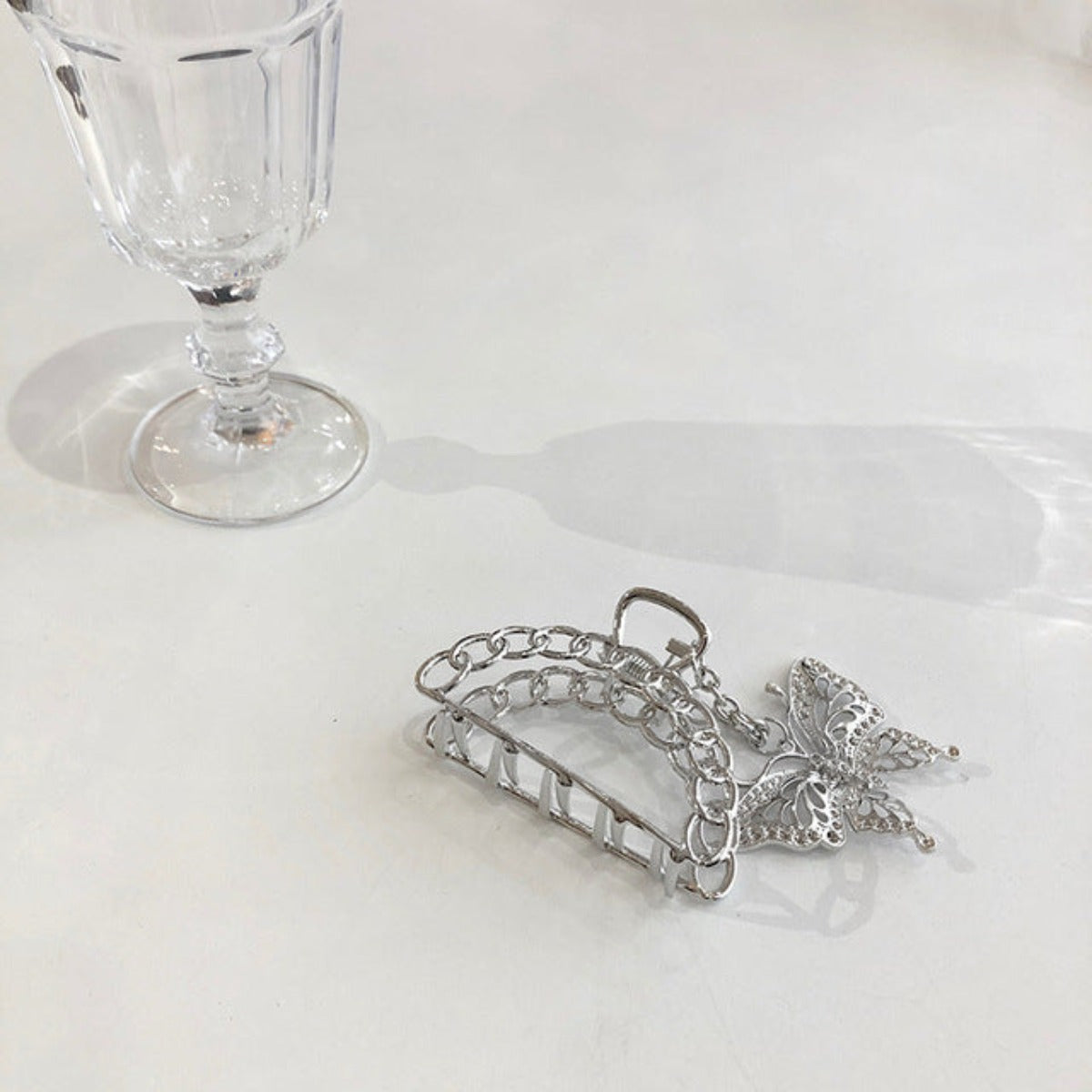 Premium Collection Golden Hair Claw Clips With Butterfly Chain